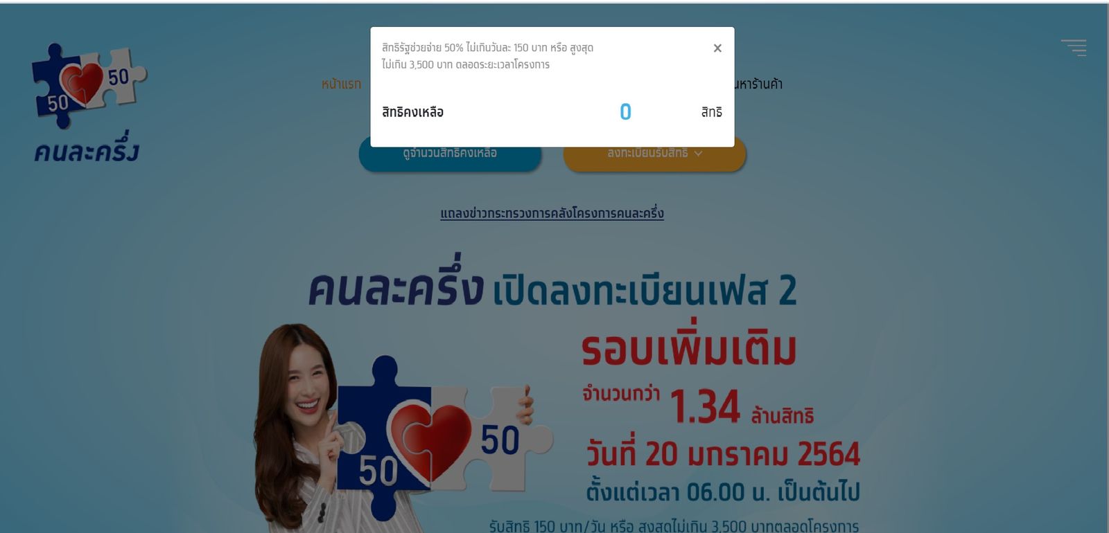 เปิดขั้นตอน วิธีลงทะเบียน เข้าร่วมโครงการ คนละครึ่ง สำหรับร้านค้า. คนละครึ่ง เฟส 2 โครงการ คนละครึ่ง ระยะ 2 อนุมัติแล้ว เปิดให้ลงทะเบียน www.คนละครึ่ง.com 5 ล้านคน เริ่ม 16 ธันวาคม 2563 เพิ่มวงเงินให้รอบแรก 500 บาท รวม 3,500 บาท. เปิดขั้นตอนการลงทะเบียนโครงการคนละครึ่ง รอบใหม่ จากผู้ตกหล่น ระยะที่ 1 และ ระยะที่ 2 รวม 1.34 ล้านสิทธิ์ วันที่ 20 มกราคม 2564 โครงการ คนละครึ่ง จะ. วิธีลงทะเบียน คนละครึ่งเฟส รับเงิน 3,500 บาท. ไทม์ไลน์ 'คนละครึ่ง' ลงทะเบียน 20 ม.ค.
